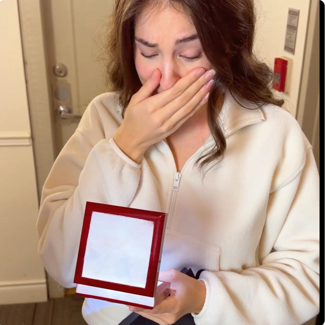 Her smile says it all — love, surprise, and pure joy in one little box.
